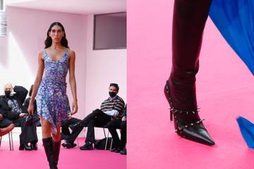 “La línea de calzado”, detallan desde Abra, “es una completa selección de zapatos que abarca desde unos discretos kitten heels hasta unas vistosas botas altas”, pasando “por mules, loafers y ankle boots, la pieza estrella y la más reconocible del trabajo del diseñador”. Para esta temporada, la firma “trabaja en un carry-over para elevarlas hasta 12cm del suelo”. “Un tacón”. añaden, “que contrasta con ligeras sandalias con lazada de tira muy fina, un modelo con versión en tachuelas” y con “zapatos cerrados fabricados con un delicado trenzado de piel”. Mientras que para los bolsos, la marca “retrabaja sus best sellers”, con modelos “baguettes, pouches con pinchos y clutches con el tamaño perfecto para guardar dos iPhones, perfecto para les chiques trabajadores con look oficina que tanto inspiran al diseñador”.