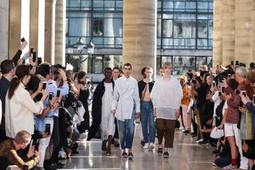 En su estreno esta semana en las pasarelas parisinas, el joven diseñador israelí Hed Mayner jugó con el arte de la transformación revisitando los uniformes que, afirma, es lo que más se lleva en su país.