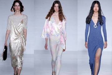 Con el brillo del nácar como principal fuente de inspiración, las modelos han desfilado presentando una colección compuesta de vestidos extra largos, túnicas y babuchas marroquíes. Diseños realizados en materiales como el lúrex, lentejuelas, tie-dye y el punto, el tejido insignia de la casa Escorpion. En cuanto a la gama de colores empleada, los tonos malvas, índigos y limas se convirtieron en los grandes protagonistas.