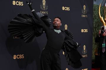 La estrella de "Pose", Billy Porter, quien causó sensación en la alfombra roja de los premios Óscar en 2019 con un vestido de esmoquin de Christian Siriano, volvió a deslumbrar con una camisa negra de Ashi ajustada, con volantes gigantes en las mangas, pantalones de cintura alta... y diamantes en abundancia.