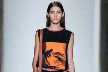 Aunque aún se apreciaron ejemplos de las siluetas largas y delgadas que son asociadas a su marca, la colección mostró una desviación significativa de Beckham hacia el uso audaz del color y los estampados.