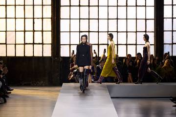 Poniendo justamente ya atención sobre las prendas y patrones clave de esta colección de mujer para FW24, de entre ellas destacan los distinto conjuntos y modelos de shorts y tipo “body”, más propios del periodo estival, pero eso sí confeccionados en un cálido tejido de landa; así como los vestidos minimalistas de corte lencero; o los igualmente lenceros, pero colmados de transparencias y puntillas, dando la imagen de piezas de moda íntima, reconvertidas en prendas de calle. Ocupando igualmente una posición central en el conjunto de esta colección los distintos modelos de chaquetas y conjuntos en piel —una de las tendencias que llegan con fuerza para estas próximas temporadas—, así como los distintos vestidos y, sobre todo, cazadoras y abrigos en acabado efecto “joya”, recubiertos por un distinto mar de lentejuelas. Terminándose de completar la colección sobre la pasarela con nuevos modelos de bolso, en acabado “mullido”, de estilo neceser, en forma de media luna y otro en forma trapecio con asas metálicas doradas efecto bambú; y con unas piezas de calzado entre las que se encontraban desde nuevas versión de los icónicos mocasines “Horsebit” de Gucci, ahora en versión plataforma y de bota de montar. Complementos que encontraban su guinda en nuevos modelos de gafas de sol estilo “cat-eye”, y en unos originales collares de cintas de tejido, con detalles en tachuelas fabricadas de oro galvanizado.