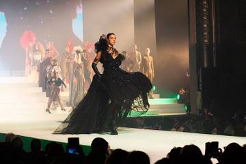 Gaultier había anticipado una gran fiesta con "muchos amigos" y no defraudó. En el elegante teatro musical de Châtelet, con una orquesta y cantantes en vivo, el otrora "enfant terrible" de la moda presentó más de 200 diseños en un ambiente de euforia, con modelos sonrientes y ademanes exagerados, y un público que aplaudió con vítores a lo largo de más de una hora.