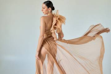 La pasarela de Ninfas mostró 16 looks inspirados en estas criaturas de la mitología griega pero con un toque vanguardista que se aprecia en las siluetas, colores, materiales y texturas.