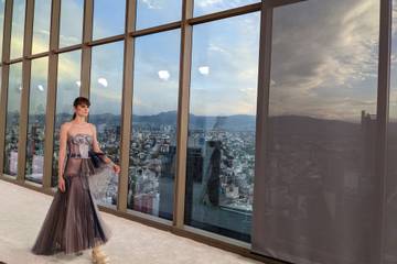 La colección de otoño invierno 22/23 se presentó en el piso cuarenta del hotel Sofitel en la Ciudad de México. Con el sol a punto de ponerse, las modelos desfilaron junto a la ventana en donde se apreciaba una vista panorámica de Paseo de la Reforma. El espacio cubierto con luz natural además de los reflectores, se llenó con los tonos dorados que denotan el fin de la tarde, ofreciendo al evento una magia especial.