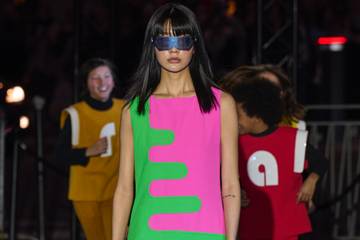 Pero, esta vez, vuelve con un enfoque más depurado y moderno, haciendo honor a los colores vivos y a los tejidos reciclados, en línea con los principios eco-responsables de Rodrigo Basilicati-Cardin.
