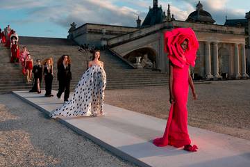 Llegando para poner el broche final a la tercera jornada de desfiles de esta última edición de la Semana de la Alta Costura de París, el diseñador italiano creaba una última colección de Alta Costura para Valentino, para la próxima temporada Otoño/Invierno de 2023/2024. Una propuesta que, como bien puede empezar a percibirse desde el encabezado de esta nota crítica sobre la colección, nadó sobre una indefinición de conceptos que ni mucho menos entra ni supone el cuestionar la valía de las piezas diseñadas por creativo. Un conjunto de diseños desde los que volvió a hacer patente sus intenciones, ya consolidadas dentro de la escena de la moda con las apuestas que en su misma dirección han dado ya otras casas de moda, de abrir la Alta Costura a una producción de género fluido, con piezas tanto de naturaleza genderless como especialmente diseñadas para un público femenino y masculino. Acepciones todas ellas ante las que terminaron por responder el conjunto de los diseños de esta colección, cuya naturaleza y valor creativo no entramos a cuestionar, no tanto así el pretendido mensaje por la “democratización” de la Alta Costura que tanto el diseñador italiano como la dirección de la casa presumen de venir a reivindicar con esta propuesta, en una intención que es la que precisamente llevó a la elección del Château de Chantilly, a las afueras de París, como espacio para llevar a cabo el desfile de presentación de la colección.