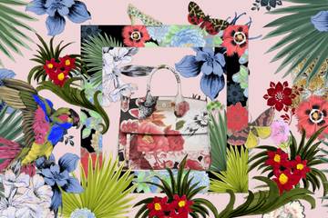 El protagonista es un diseño nuevo y extraordinario: la colección se caracteriza por retratar un mosaico de elementos icónicos de la Maison, como felinos, flores, zapatos, mariposas, elefantes y sultanes, en medio de ensoñaciones orientales y un mundo floral mágico. Cada impresión se adorna con pequeñas imperfecciones, mantenidas deliberadamente, típicas de dibujos y bocetos a mano alzada. Detalles que hacen de cada accesorio una verdadera obra de arte para ser usado, regalado o simplemente coleccionado.