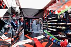 El concepto y nuevo diseño del local que se sitúa en el cotizado barrio del Born, ha corrido a cargo del estudio Milton & Herbert y la ejecución, llevada a cabo por el equipo de Novodecor, resulta en un espacio futurista formado por hexágonos reflectantes y luces led que soportan las zapatillas y accesorios deportivos, dándoles el total protagonismo.